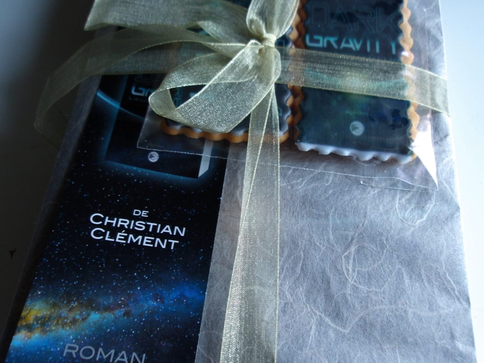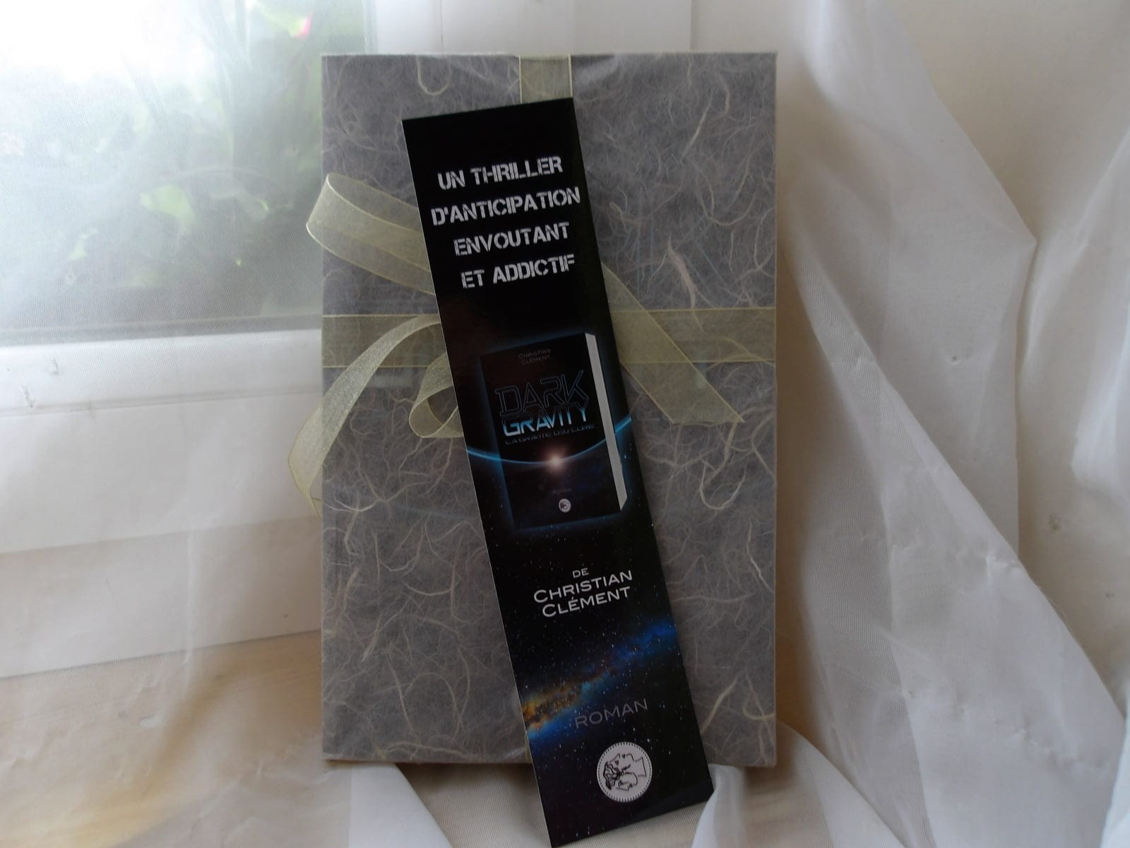 Il est rare que je m’étale sur la réception de mes bouquins, pourtant, celui-ci mérite quelques mots tant l’auteur m’a gâtée. J’ai gardé ce cadeau ainsi plusieurs jours sans l’ouvrir tellement je le trouvais joli malgré mon irrésistible envie de me plonger dans La gravité obscure dont le résumé m’a séduite, tout comme la couverture du roman.