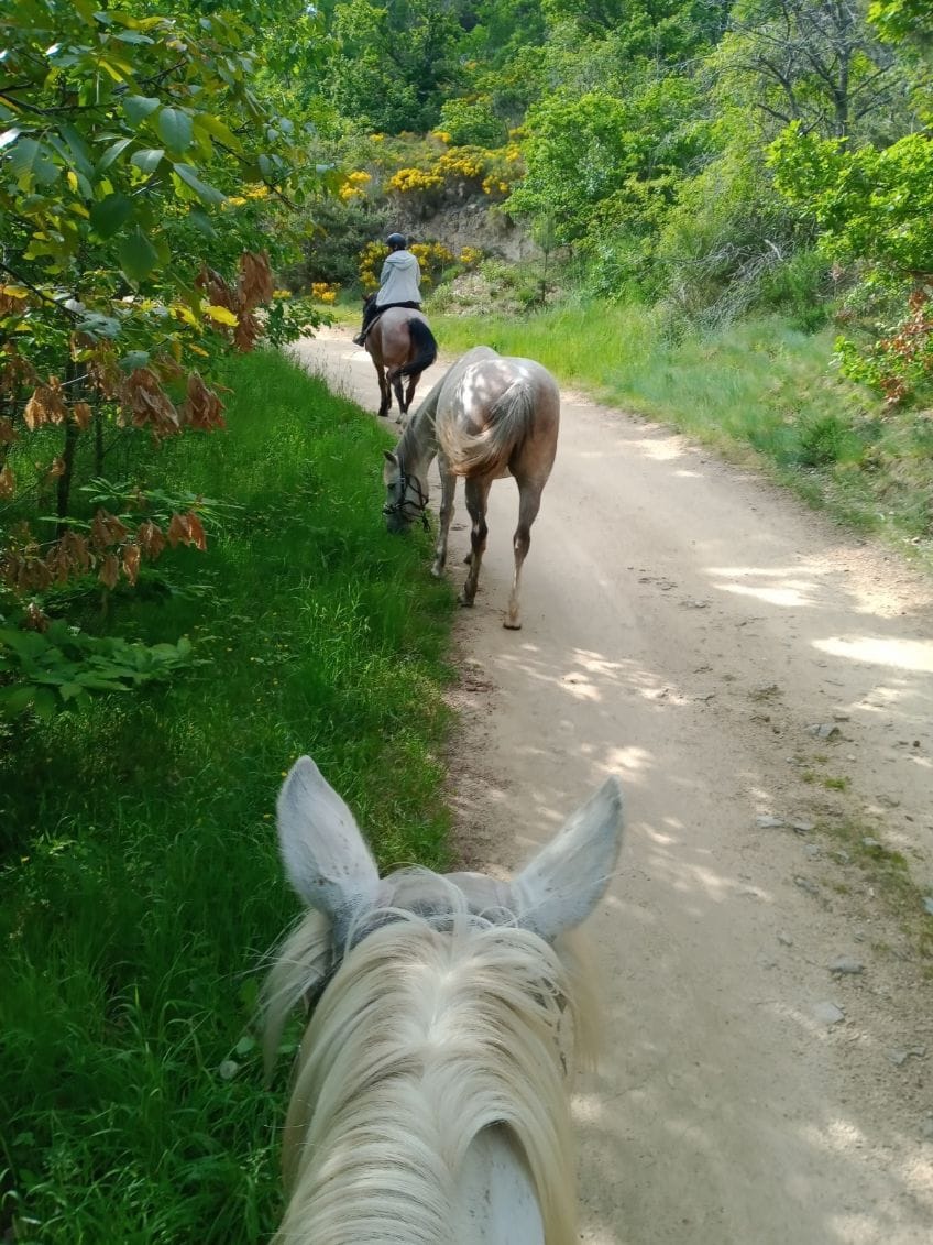 Je sautille d’impatience depuis le début de semaine en vue de ces quatre jours de randonnée en compagnie de mes chevaux, mes sacoches et mes chaussures de montagne. Ce n’est pas un trek, mais je vais aller me perdre dans la forêt, les chemins entre Loire er Ardèche et planter mon bivouac chaque soir.