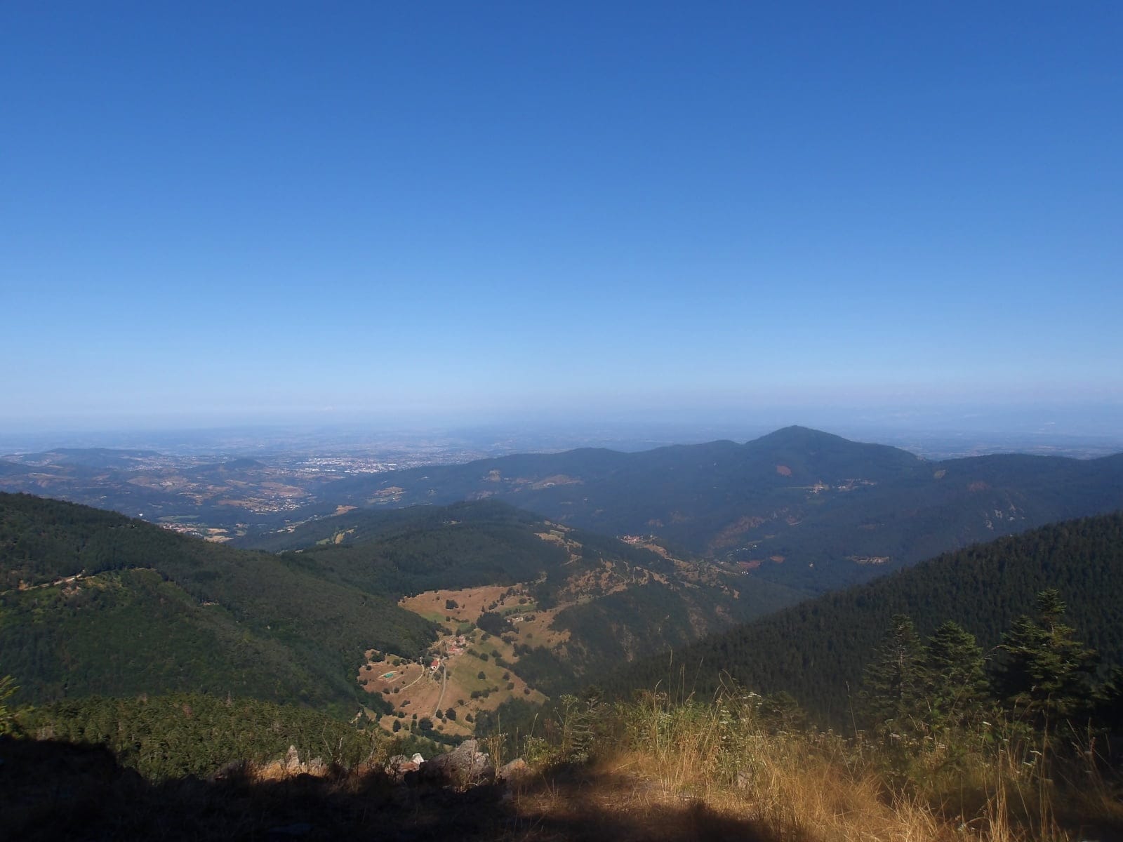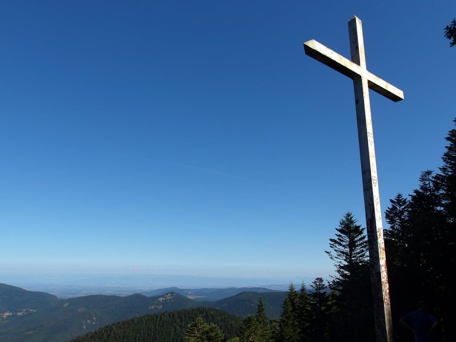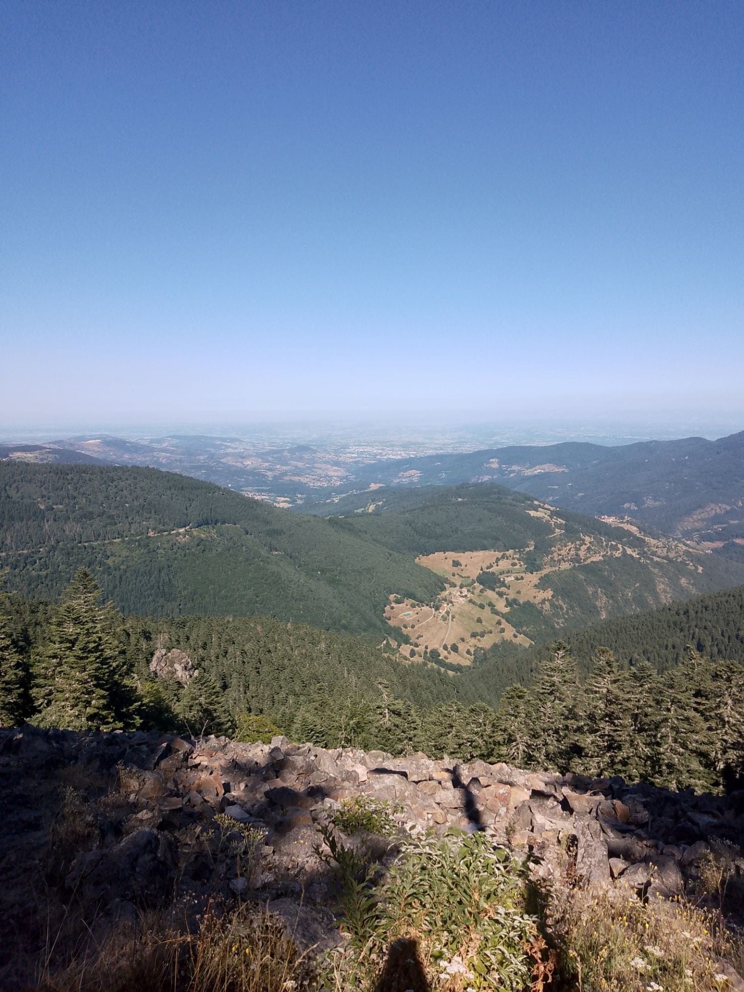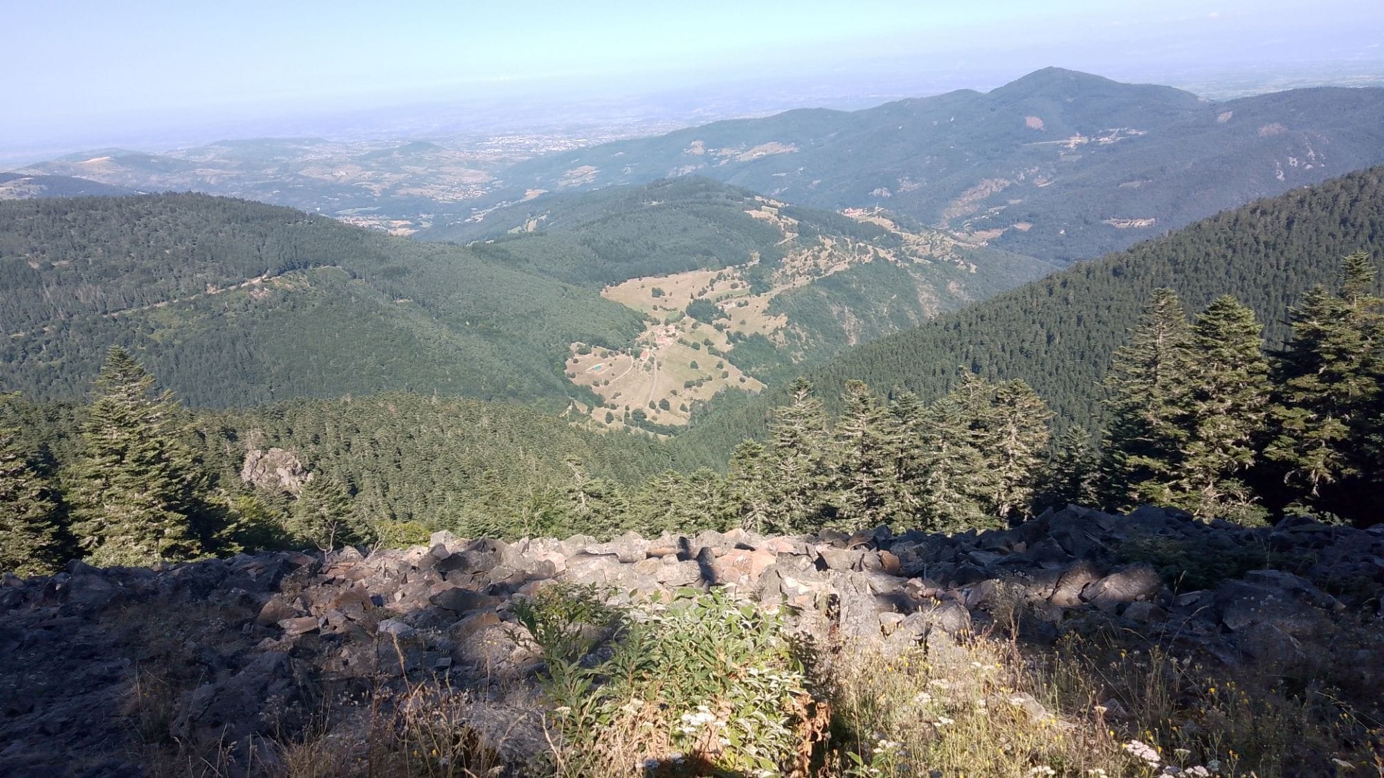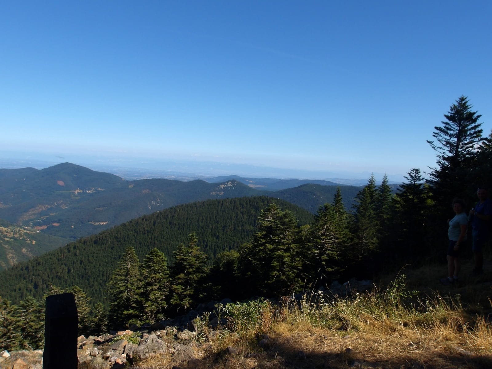 Ensuite tu parviens au sommet. Chaque effort est récompensé lorsque tu contemples cette fresque vivante face à toi : là-bas, c’est le Pilat ; plus loin encore se profilent les silhouettes immaculées du Mont Blanc et du massif de la Vanoise ; tandis qu’à l’horizon s’étale majestueusement le massif des Écrins.