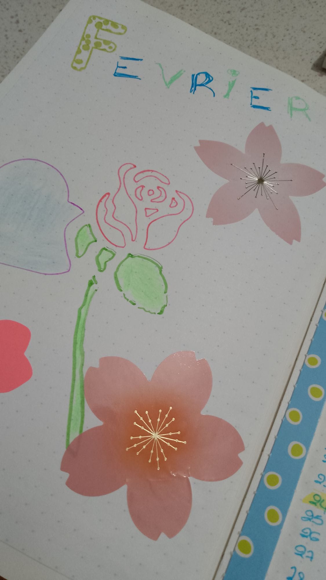 J’adore soigner la page d’ouverture de chaque mois dans mon Bullet Journal. Février ne fait pas exception : j’ai opté pour une mise en page fleurie et colorée, un mélange de roses délicates et de touches pastel qui rappellent les prémices du printemps.