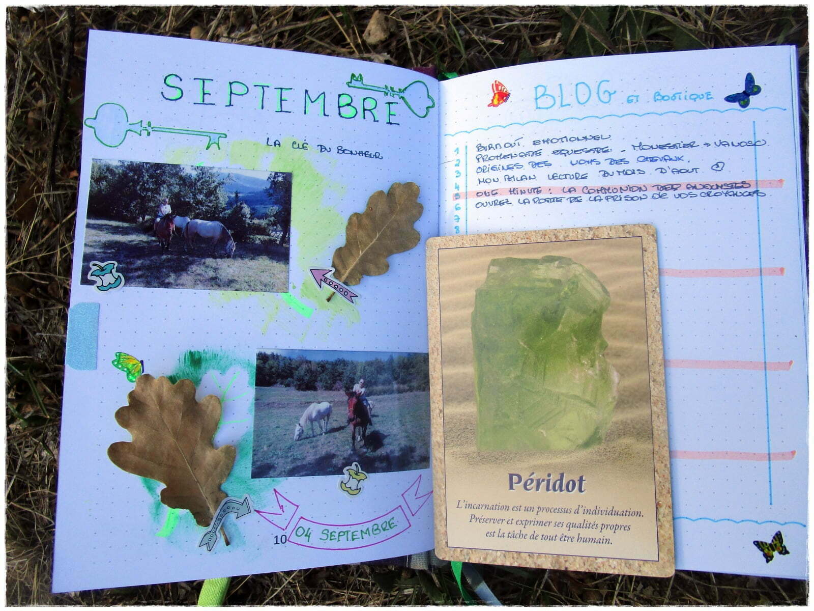 J’ai aussi collé des photos des meilleurs moments passés avec les chevaux que j’allais voir chaque dimanche à pied, avec mon sac à dos, alors qu’ils étaient hébergés en altitude dans un autre village. Beaucoup de douleurs physiques mais une remise en condition nécessaire.