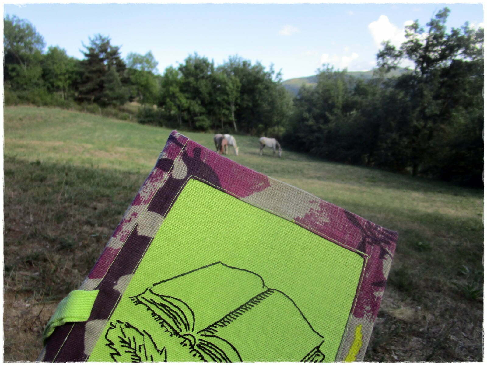 Si mon organisation était bien préparée, j’ai réalisé ma page d’accueil sous le signe de la clef du bonheur en ce dimanche 4 septembre, dans l’herbe, en compagnie des chevaux. Ils étaient très heureux de se détendre sur cet espace relativement plat pour mon secteur ;D