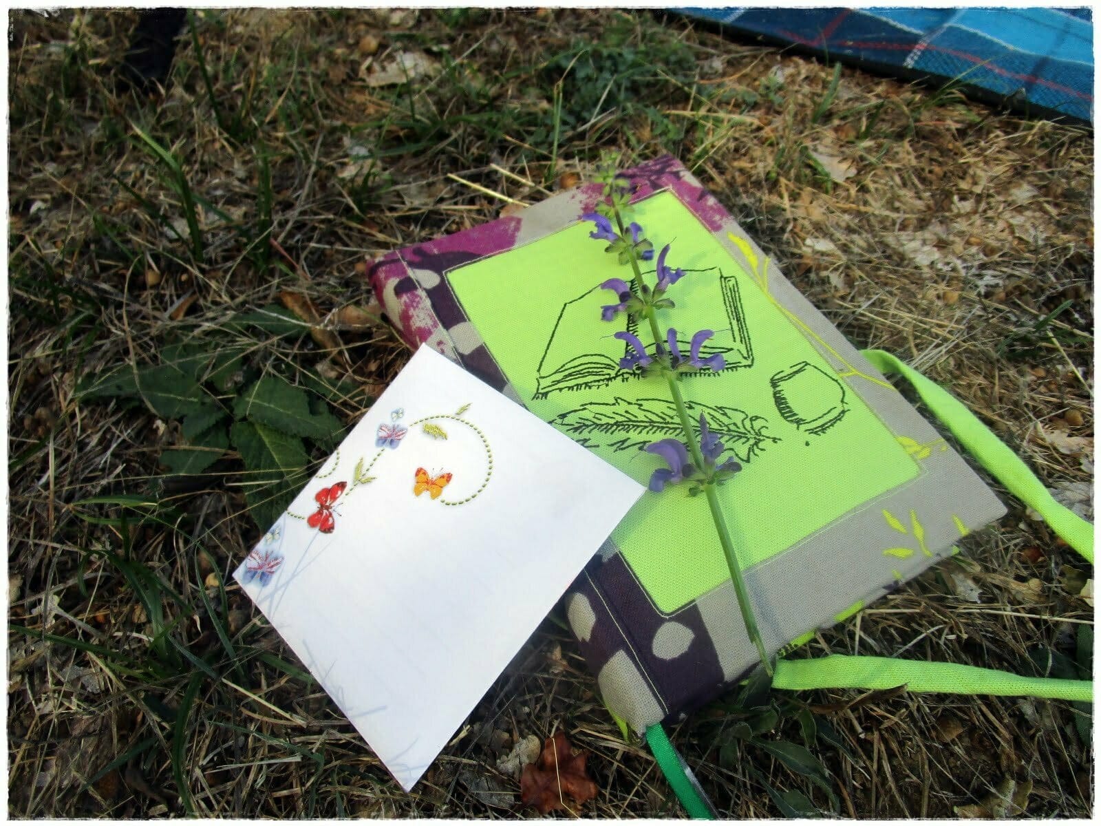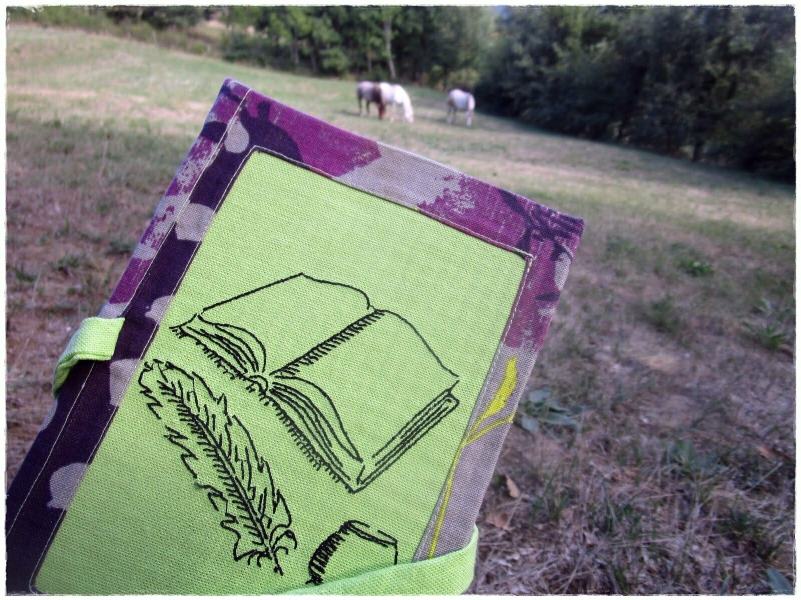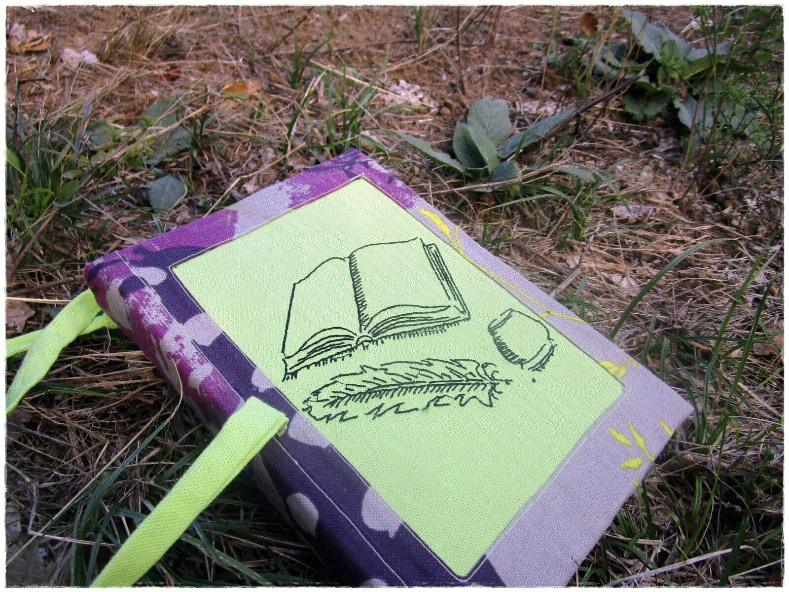 Ce mois-ci, je change de carnet, l’ancien est plein à craquer de mes photos, notes, rendez-vous : je l’ai donc archivé. J’ai fabriqué ce carnet pour moi, avec ma broderie favorite, textes et calligraphie, un pur bonheur. Il est au format A5 (idéal), j’ai aussi sa grande pochette pour livre ou liseuse ainsi que celle, plus petite, pour mes stylos, feutres etc…