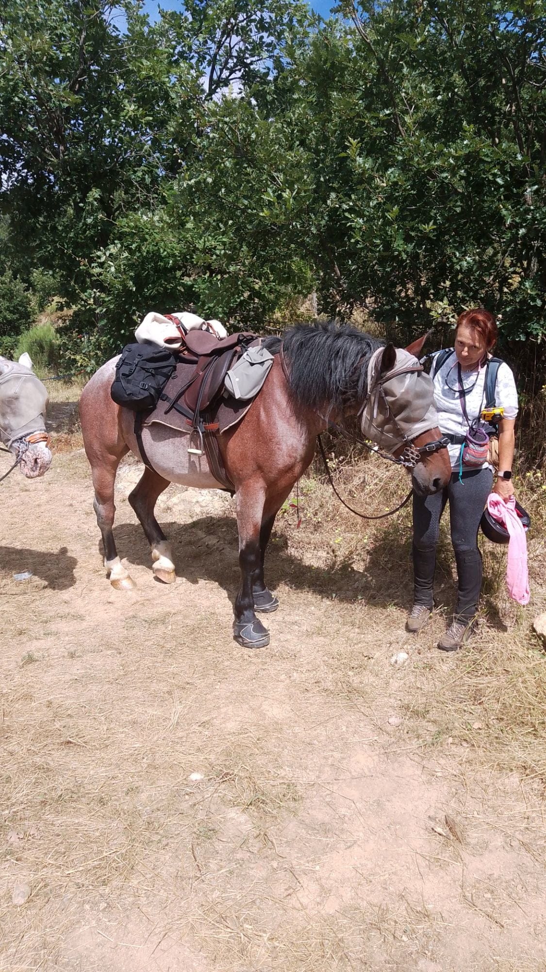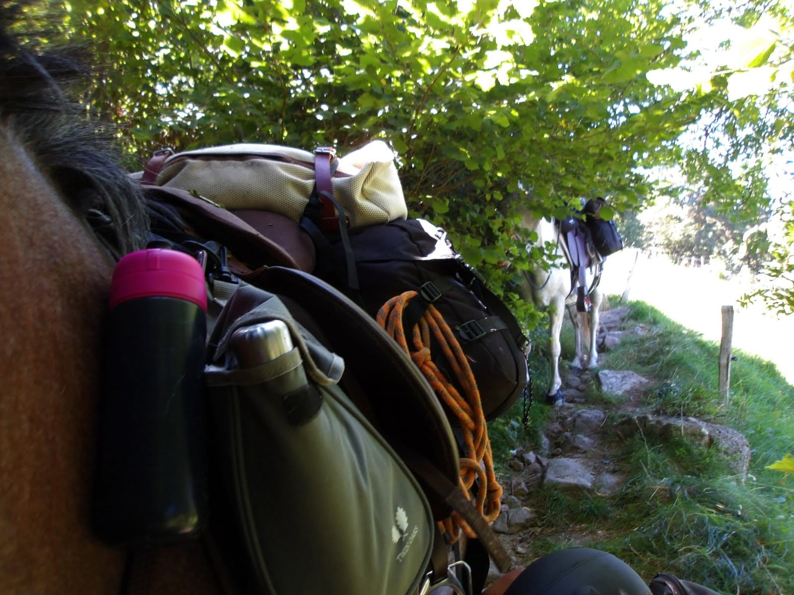 Heureusement que Ganesh, mon fidèle destrier, est un cheval qui a vu bien des choses. Il est resté là, le regard tranquille, comme s’il se disait : « Encore un coup de l’humain et de ses sangles capricieuses. » Pas un seul mouvement de panique de sa part, pas un petit coup de sabot pour s’inquiéter de son cavalier bien mal en point. Non, lui, il a juste attendu, imperturbable, que je refasse le chargement pour la troisième fois… Oui, à ce stade, c’était presque devenu une performance de cirque !