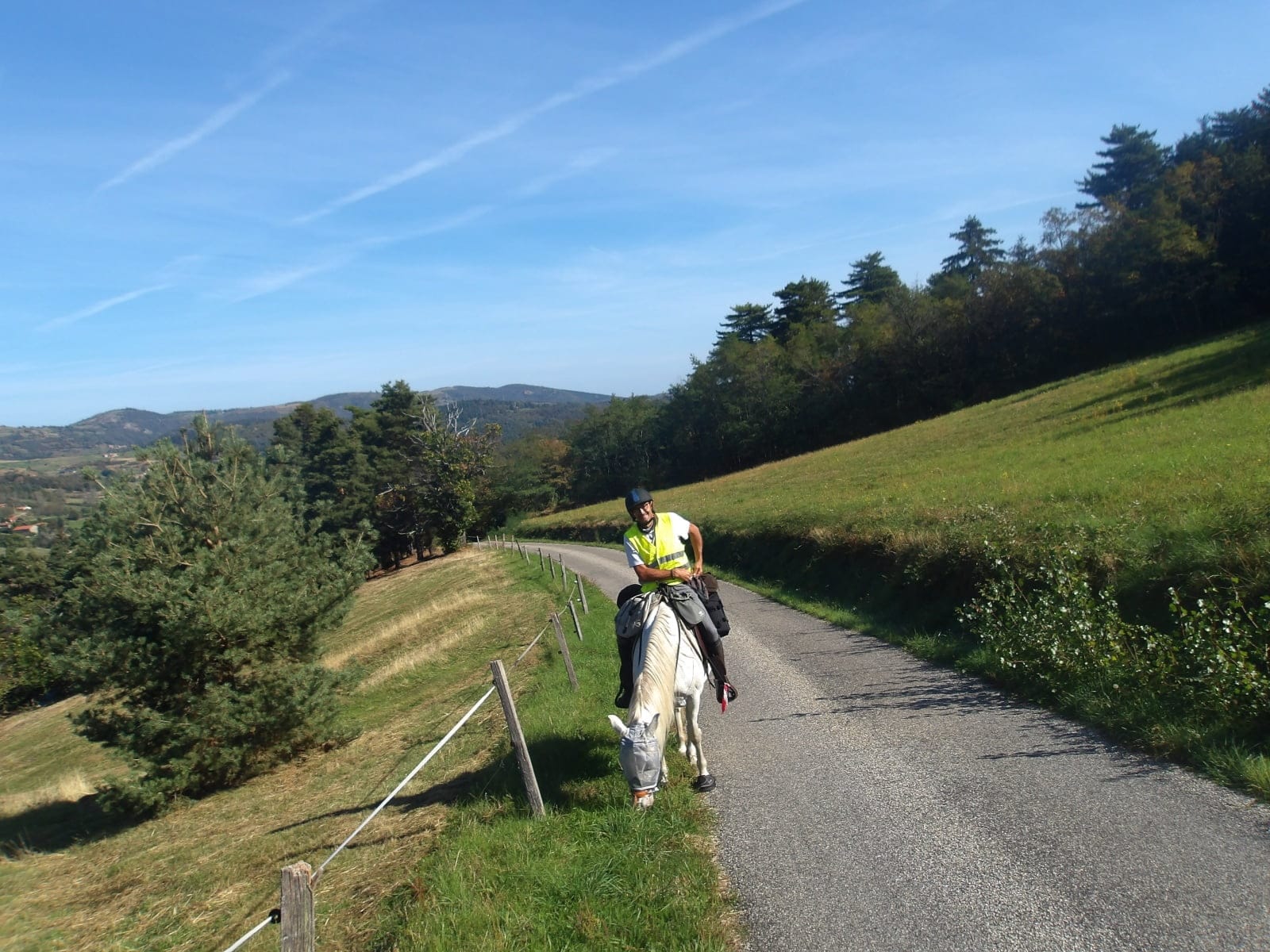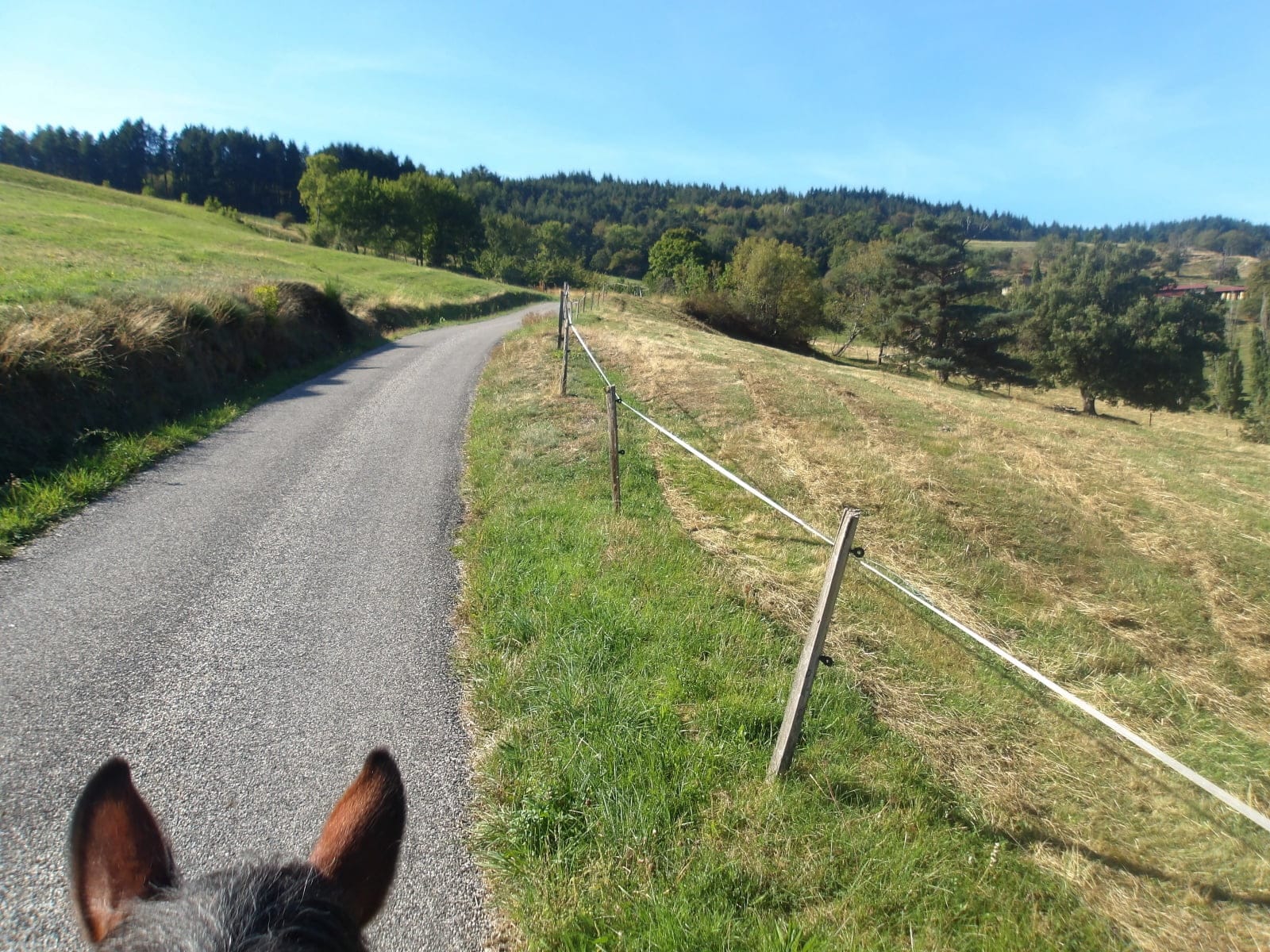 A force de pratique, le chargement de mes affaires a pris moins de temps que lors de la randonnée de printemps. Nous avons maintenant des selles de randonnée où les sacoches se fixent avec beaucoup de facilité. Petit bémol, le premier jour, l’un de mes pontets s’est dévissé, le boudin a donc glissé et blessé Ganesh. Rien de dramatique mais je dois retourner à la sellerie Baude pour réparation.